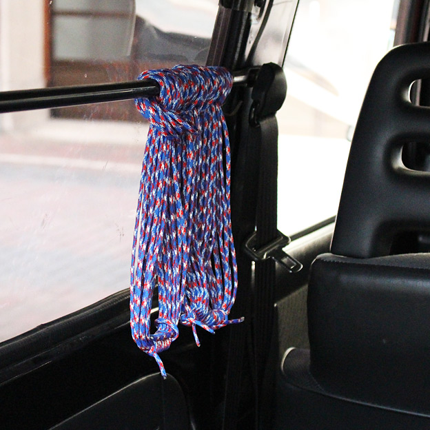 荷台に載せた荷物を固定したりなど、日常生活でも何かと使うことが多いので、いつも車に置いてます。