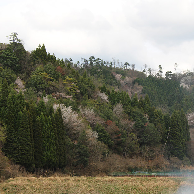 道路の右側にあるのが、お借りする予定の山。Yさん所有の山なので、Y山と呼ぶことにします。