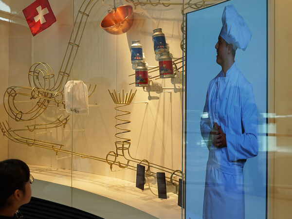 チョコレート、そしてスイスにおける業界の発展の歴史などを学ぶコーナー。